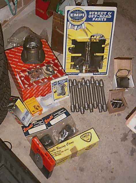 pushrod tubes, hiperf coil (blue), front axle lowering kit, hiperf ball-jointed rocker adjuster screws.