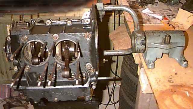 Also a VW special tool no. 313 (engine stand) was installed to my workshop table so that the